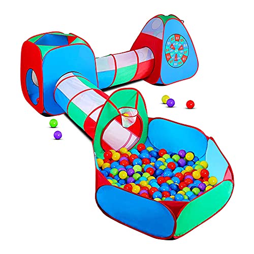 - ✔【Gran área de Juego】Te sorprenderá lo grande que es. Pozo de bolas de gran capacidad, puede contener hasta 500 bolas oceánicas (no incluidas), nuestra carpa de juego tiene un pequeño aro de baloncesto y un objetivo de dardos, 4 dardos, 8 pelotas, a los niños les encanta jugar.