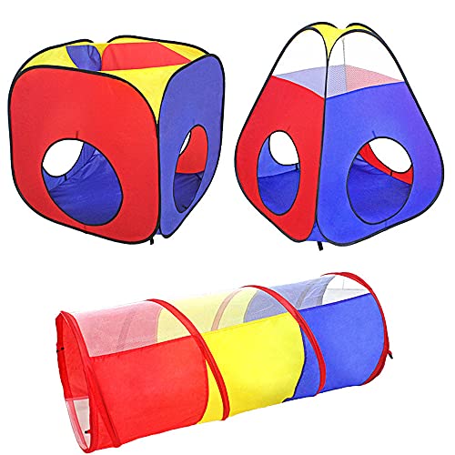 - 3 en 1 – Carpa de juegos / Tienda de campaña infantil para jugar + Túnel de tela + 200 bolas + Bolsa para transportar. Perfecto para uso interior y exterior.