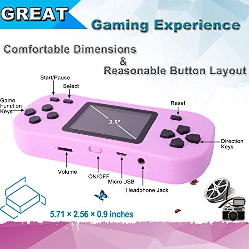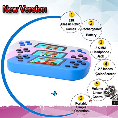 ZHISHAN Consola de Juegos Portátil Retro para Niños Precargado con 218 Videojuegos Clásicos Sistema de Juego Arcade Recargable y con Pantalla de 2.5 Pulgadas (Rosa)