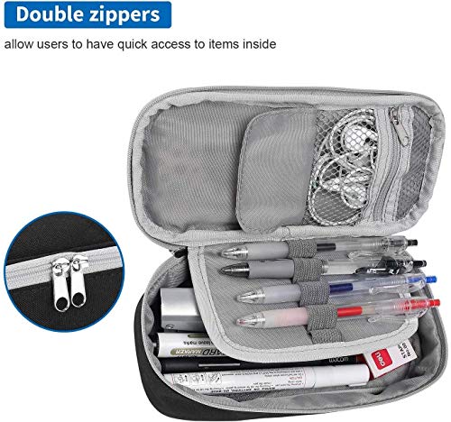 ProCase Estuche Escolar Gran Capacidad, Bolsa de Lápiz Portable Lapicero para Material de Papelería Maquillaje con Cremallera Doble para Estudiantes en Escuela y Empleados en Oficina –Negro