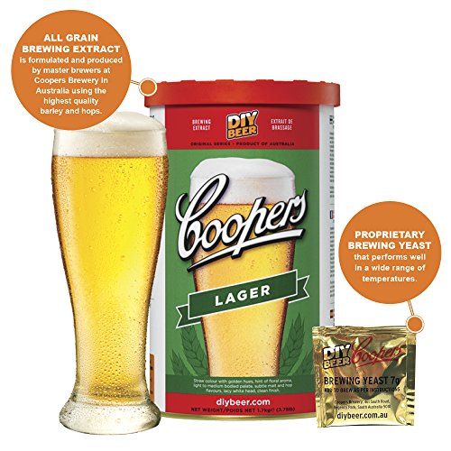 - Coopers DIY Beer Lager Brewing Extract prepara 6 galones (48 pintas) de deliciosa cerveza artes. Pajita de color con tonos dorados y una cabeza blanca de encaje. Los aromas florales ligeros siguen a través de un paladar de cuerpo ligero a medio con sutiles sabores de malta y lúpulo y un acabado limpio. Un estilo Lager australiano con mucho carácter.
