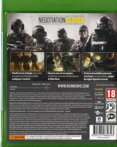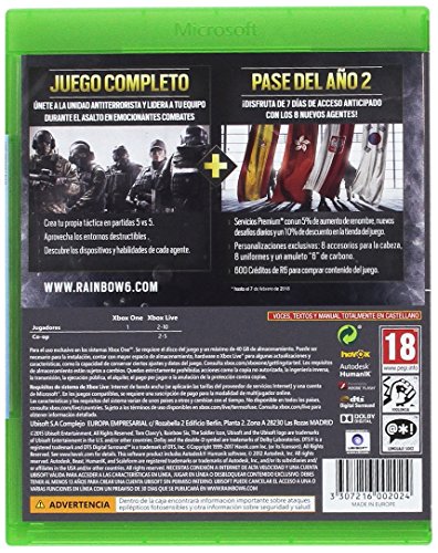 Ubisoft Tom Clancy’s Rainbow Six Siege, Xbox One Básico Xbox One Francés vídeo - Juego (Xbox One, Xbox One, FPS (Disparos en primera persona), Modo multijugador, M (Maduro), Soporte físico)