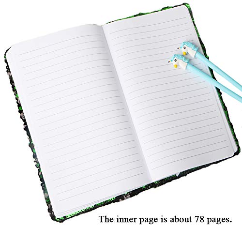 Diario de Lentejuelas, Cuaderno Mágico Reversible y Bolígrafos de Unicornio, Diario de viaje A5 Bloc de Notas para Niños y niñas Regalo de Cumpleaños, Juego de Bolígrafos de gel de Lentejuelas Mágicas