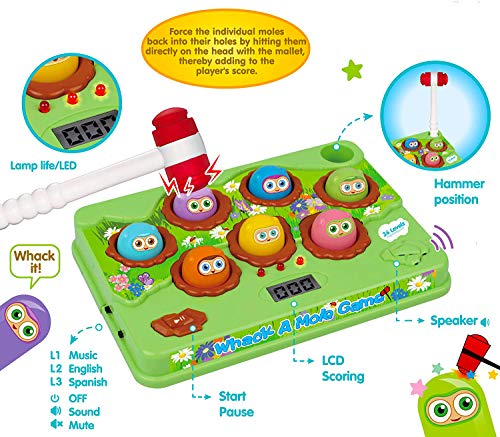 - ćFunción Divertidać AcompaƱado de mĆŗsica y luces agradables durante el uso, eso traerĆ” mucha mĆ”s diversión. Hay canciones infantiles en cuatro idiomas diferentes. Incluye inglĆ©s, espaƱol, ruso y portuguĆ©s. Martillos blandos , los materiales de primera calidad utilizados durante la producción, porque sabemos que usted quiere lo mejor para sus hijos.Regale a sus hijos como regalo de cumpleaƱos y dĆas festivos (DĆa del NiƱo, Navidad, Halloween, Acción de Gracias y AƱo Nuevo).