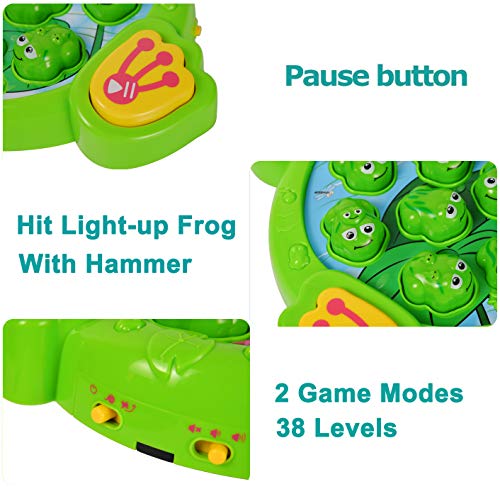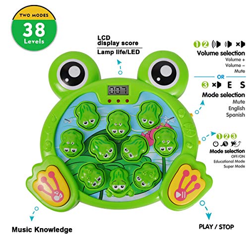 - ćJuego Interactivo Familiarć Este juego de ranas es el mejor juguete interactivo entre padres e hijos para niƱos. Viene con un contador de puntuación LCD y dos martillos de goma blanda de PVC resistentes a los impactos. Los padres pueden orientar a los niƱos sobre cómo jugar, acompaƱar a los niƱos pequeƱos a pasar todos los niveles. Ejercita el espĆritu cooperativo de los niƱos.
