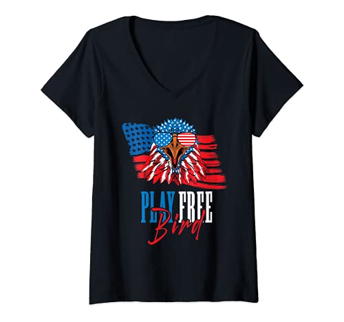 Mujer Juega gratis Bird Eagle USA Flag Independence Day Camiseta Cuello V