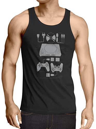 style3 PS1 Retro Gamer Camiseta de Tirantes para Hombre Tank Top Mando videoconsola, Talla:S