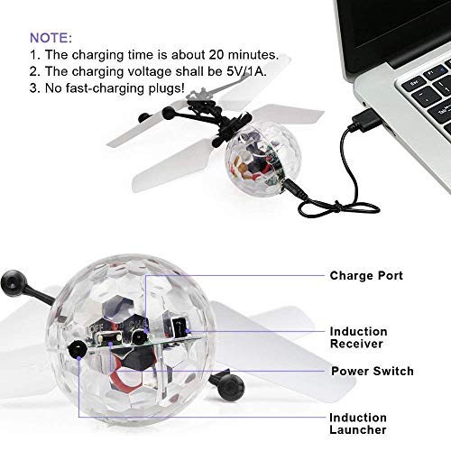- āćLuces LED de ColoresćSus increĆbles y coloridas luces LED hacen que la bola voladora se convierta cada vez mas es una bola fantĆ”stica y bonita. Esta bola voladora mĆ”gica LED se aparenta a una bola de cristal transparente. Las luces parpadearĆ”n y brillarĆ”n intensamente cuando lo enciendas. Se ven muy increĆbles y maravillosas, especialmente en la oscuridad de la noche.