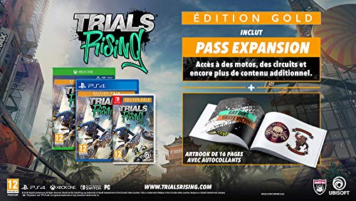 - Mejora tu experiencia de Trials Rising con la GOLD EDITION, que incluye, además del juego, el Season Pass y un libro de pegatinas de 16 páginas.
