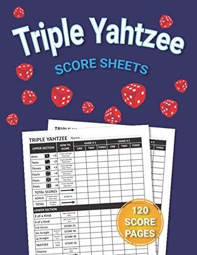 Triple Yahtzee Score Sheets: 120 Pads For Scorekeeping - Triple Yahtzee Score Pads Large Print | Triple Yahtzee Score Sheets Large Print With Size ... ( Triple Yatzee Dice Game Score Sheets)