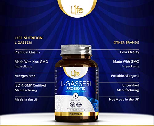 - HAGA DE L1FE NUTRITION SU ELECCIÓN DE SUPLEMENTOS - Nuestras cápsulas de Lactobacillus gasseri son libres de lácteos, sin gluten y sin alérgenos y sin OGM.