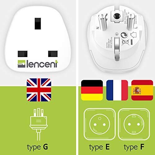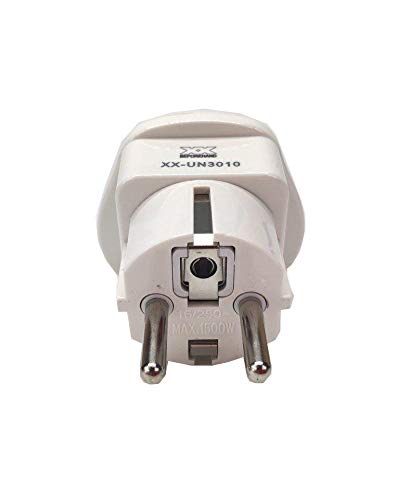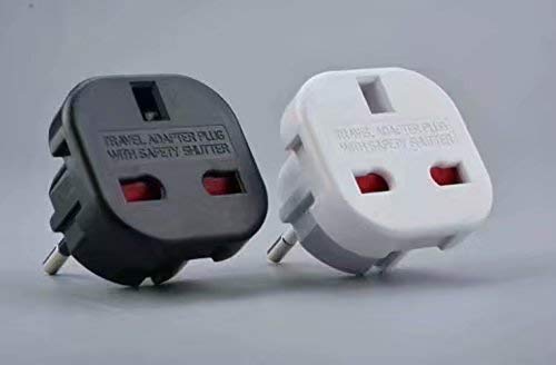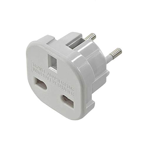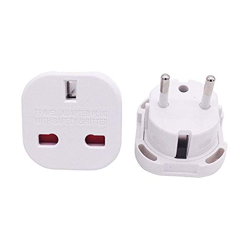 - Adaptación Perfecta – 3 pines del Reino Unido a 2 pines Schuko de Europa. Perfecto para conectar a celulares inteligentes, afeitador, batería externa, iPhone y más. También ideal para la mayoría de los dispositivos de alta potencia como laptops o secadores de cabello.