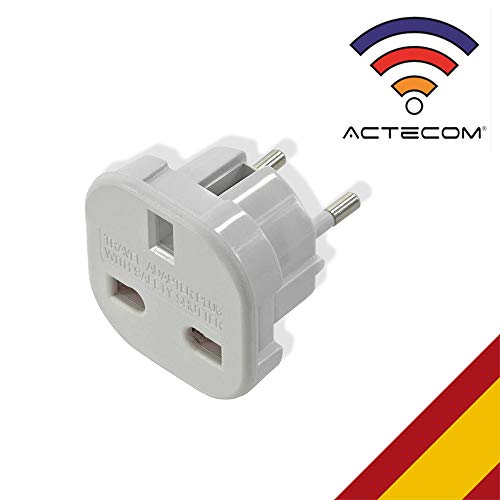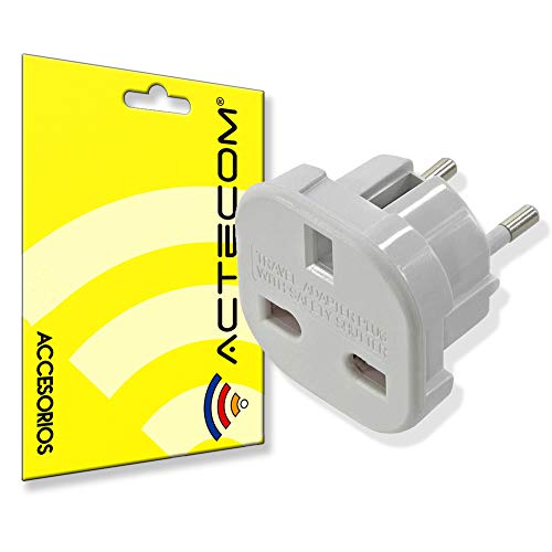 ACTECOM Adaptador Corriente Enchufe UK Ingles Reino Unido A Europeo Redondo UE Universal Blanco