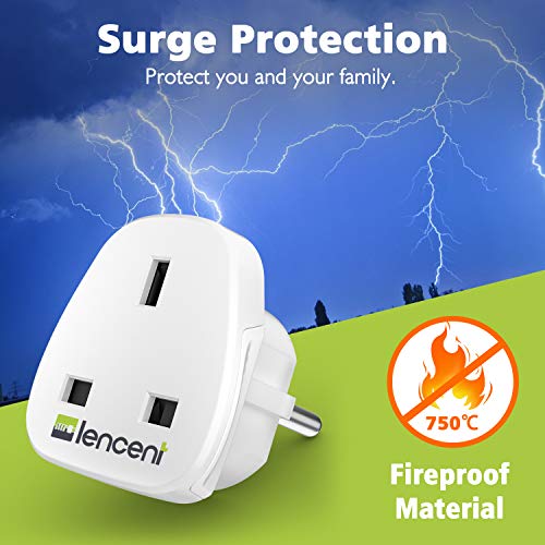 LENCENT 2X Adaptador de Enchufe de UK a Enchufe Europeo[3250W/13A MAX], Adaptador UK España, Adaptador UK EU, Adaptador de Viaje inglés a español