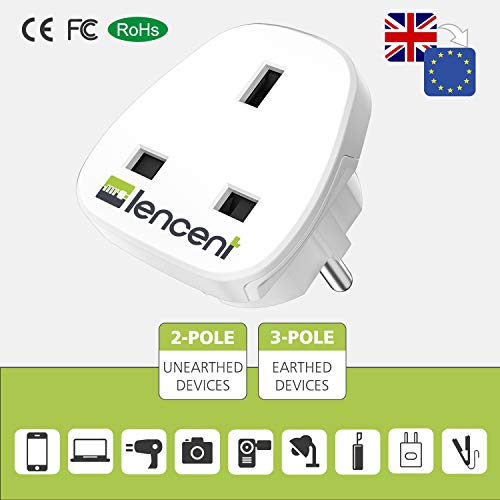 - Adaptador de Enchufe del UK a España - Para conectar los enchufes ingleses (Reino Unido, Irlanda, Singapur, Hong Kong, Chipre, Malta, Kenia) en España. Perfecto para comprar productos electrónicos en el extranjero o alojar amigos extranjeros en casa.