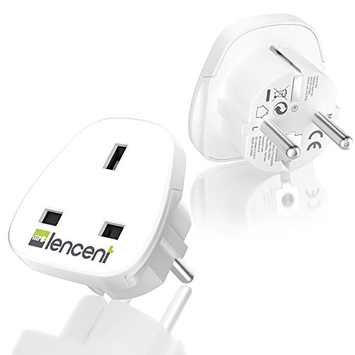 - Kenable Schuko - Adaptador de enchufe europeo a enchufe británico de 3 pines de 13 A, color blanco