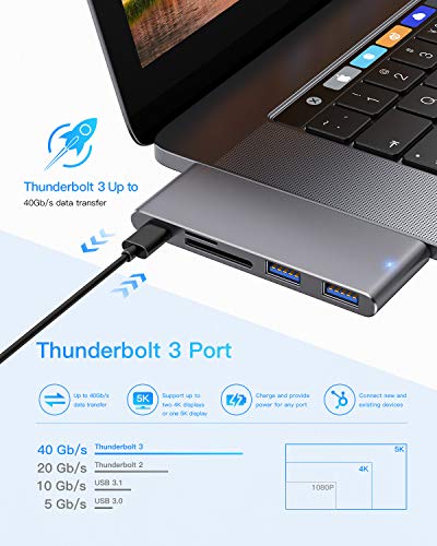 Hub USB C, Adaptador Tipo C Hub Slim Thunderbolt 3 de Aluminio para MacBook Pro 2019/2018/2017/2016 13"y 15", MacBook Air 2019/2018 13", 2 Puertos USB 3.0, 1 Lector de Tarjetas SD y 1 TF