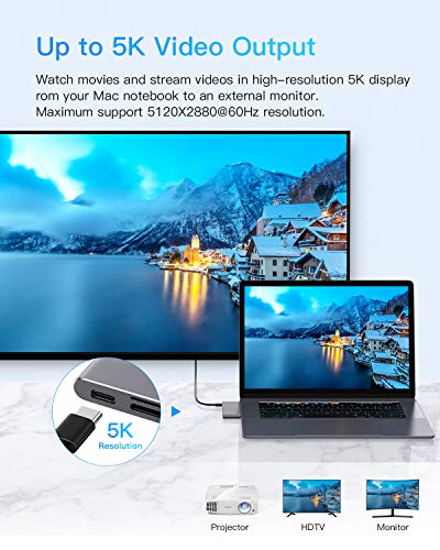 - [Transferencia de Datos de Alta Velocidad]: El ancho de banda Thunderbolt 3 alcanza hasta 40 Gb / s, el puerto USB 3.0 permite una velocidad de transferencia de datos de hasta 5 Gbps, 10 veces más rápido que USB 2.0, lo suficientemente rápido como para transferir una película HD en segundos. Las ranuras SD y TF incorporadas transfieren fácilmente archivos a 104 MB / s a sus dispositivos.