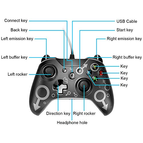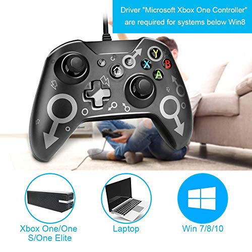 - 【Amplia compatibilidad】 --- Este controlador con cable USB es compatible con Xbox one, Xbox One, Xbox onex, One Elite y PC con Windows 7/8/10. (Cuando está conectado a la PC, el controlador "Microsoft Xbox One Controller" debe estar instalado, Win8 y las versiones superiores no lo necesitan).