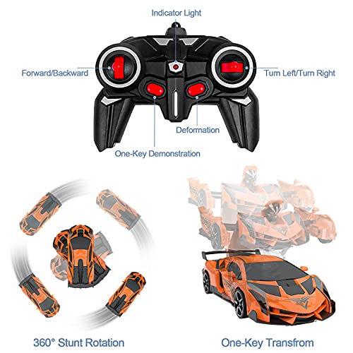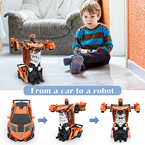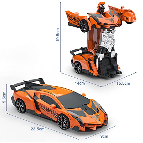 - [Diseño deformable]. El automóvil transformable puede cambiar de automóvil a robot mediante un botón de deformación, podrás disfrutar el robot genial. Es una forma divertida para incrementar la curiosidad intelectual y creatividad de tus niños explorando las muchas posibilidades y dejar volar su imaginación.