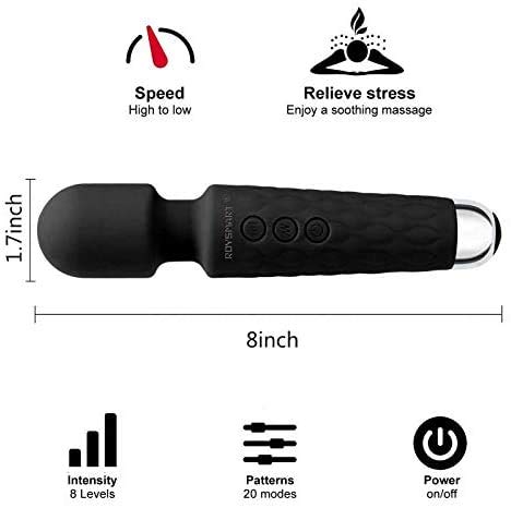 - ? Resistente al agua: la varilla es resistente al agua, por lo que es fácil de limpiar si es necesario. Sin embargo, se debe evitar sumergirlo bajo el agua. Las toallitas húmedas son perfectas para mantener el masajeador en perfecto estado.