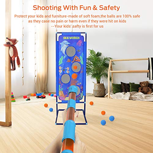 STOTOY Juego de Tiro, Divertido Juego de Tiro para Niños con 2 Pistolas de Aire con Bolas de Espuma y Blanco de Tiro de Pie y 24 Bolas de Espuma, Regalo Ideal para Niños y Niñas de 5 6 7 8 9 10+ Años