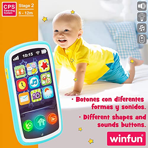 winfun - Teléfono móvil bebés, Juguete teléfono, móvil con sonidos, melodías y luces, + 6 meses, juguetes primera infancia, juguetes bebés, móvil bebés (44523)