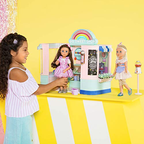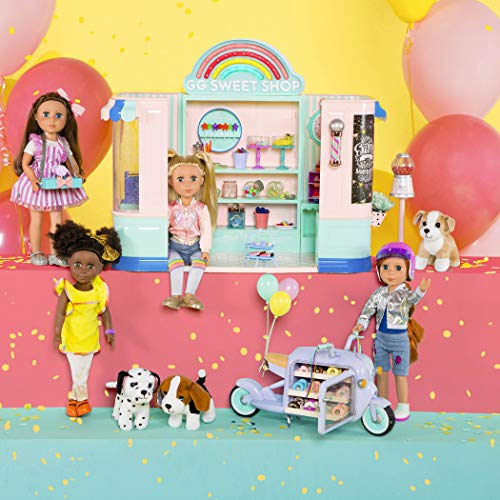 - Rígete todo el camino a la tienda de dulces mientras compartes tu dulce diente con todos tus amigos de muñeca (las muñecas se venden por separado, disponibles en Amazon)