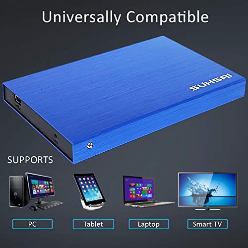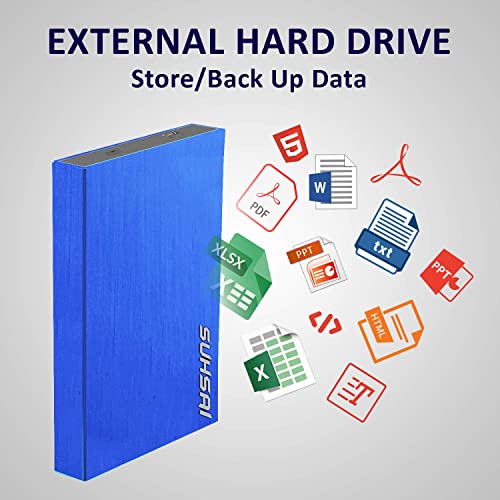 Suhsai Disco duro externo portátil para almacenar datos, películas, música disco duro externo 2.0 USB compatible con SmartTV, Mac, portátil, tableta y PC (500 GB, azul)