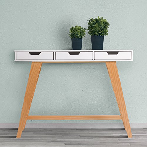 VS Venta-stock Consola/Mueble recibidor de 3C en Color Blanco con Patas de Madera Maciza
