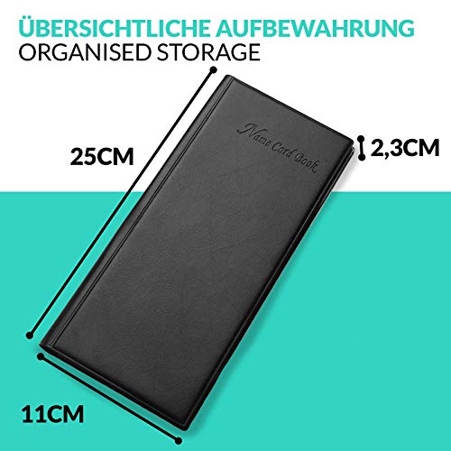 - COMPACTO: El porta tarjetas / libro de tarjetas cabe en cualquier maletín o bolso. Tamaño cuando está cerrado: aprox. 25 x 11 x 2,3 cm - Tamaño cuando está abierto: aprox. 25 x 24 cm.