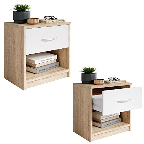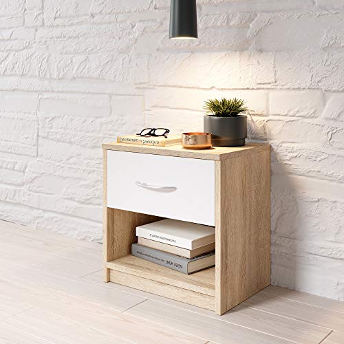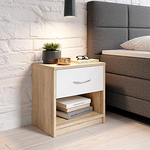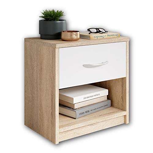 Stella Trading Pepe Mesita de Noche Sencilla con un cajón Adecuada para Cada Cama y Dormitorio, Roble Sonoma/Blanco, 39 x 41 x 28 cm