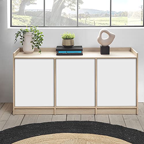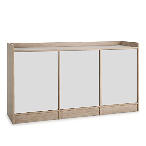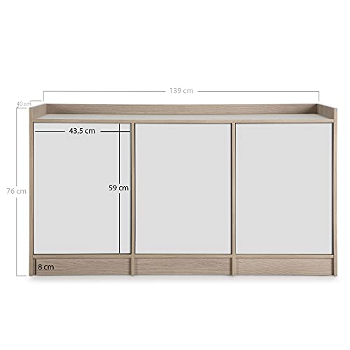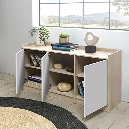 VS Venta-stock Aparador Moscú 3 Puertas y 3 estantes Interiores, Color Roble/Blanco, 139 cm (Ancho) 40 cm (Profundo) 76 cm (Altura)