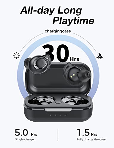 - 30 Horas de Reproducción: Auriculares bluetooth pueden reproducir música durante 5 horas con una sola carga, el estuche de carga puede proporcionar una carga adicional de 5 veces.