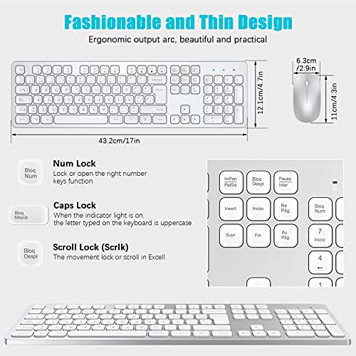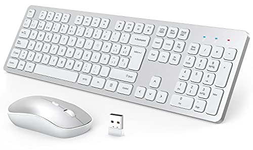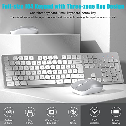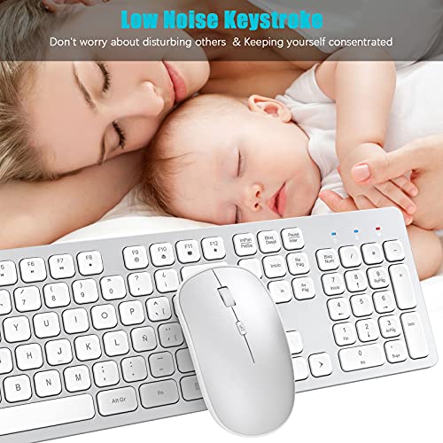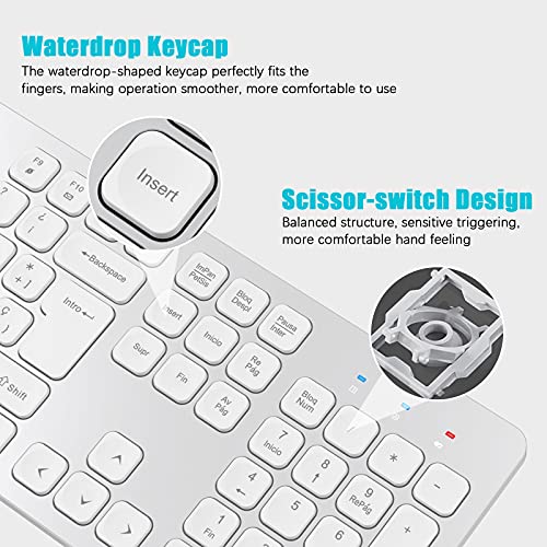 TedGem Teclado y Raton Inalámbrico, 2.4G Combo Teclado Raton Inalambrico, 2 en 1 USB Ultra Delgado Silencioso Packs de Teclado y Ratón para PC/Laptops/Smart TV (Blanco)