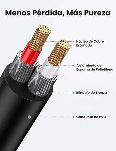 UGREEN Cable Jack a 2RCA, Cable de Audio 3.5mm a 2RCA con HiFi Sonido, Minijack a RCA Macho Audio Estéreo Cable para Móvil, Tablet, PC, Reproductor MP3, iPod, Amplificador, Altavoz, TV, DVD, 5 Metros