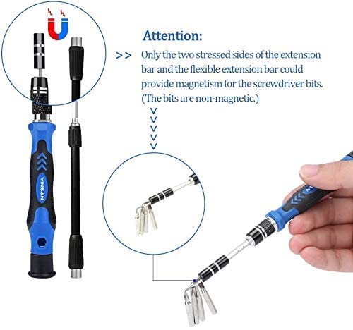 - ?Juego de Destornilladores de Precisión Imantados: Kit de herramientas de reparación YINSAN viene con una alfombrilla de memoria de tornillo magnético para el desmontaje y montaje de tornillos de una manera conveniente y efectiva. No se preocupe por la pérdida o la instalación incorrecta de tornillos pequeños y precisos.