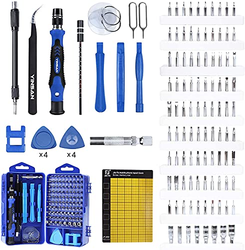 - ?120 en 1 Destornilladores Precisión: El juego de destornilladores de precisión YINSAN podría usarse en la reparación común de electrodomésticos, como televisores, aires acondicionados, ventiladores, refrigeradores, automóviles, etc. También es una necesidad en el desmontaje y mantenimiento de teléfonos móviles, cámaras digitales, relojes, anteojos, computadoras portátiles, computadoras portátiles y consolas de juegos.