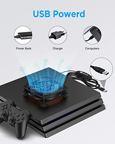 EasyAcc Ventilador USB de Caja Silencioso Refrigerado 120mm Ventilador Axial DC 5 V con 3 Velocidades Ajustables para PC/ Ordenador/PS4/TV/Armario AV/Router