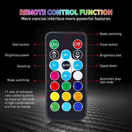 - Mando a distancia inalámbrico RF: se incluye un control inalámbrico para mayor comodidad y un funcionamiento más fácil. Con una sola tecla, puedes ajustar fácilmente la velocidad del ventilador (S/M/H), efectos de iluminación, brillo, velocidad LED sin abrir la funda.