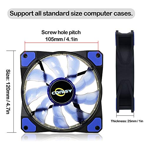 conisy Ventilador de PC, 120 mm LED Gaming Ultra Silencioso Ventiladores para Caja de Ordenador (Doble Azul)