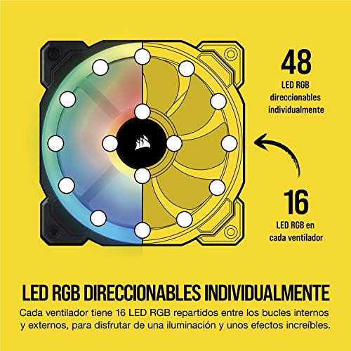 Corsair LL120 RGB Ventilador de PC (120 mm, Doble Halo RGB LED PWM) Paquete Tripla con Lighting Node PRO