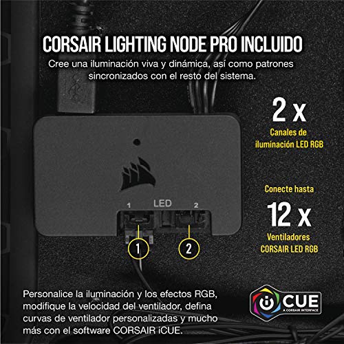 - El Corsair Lighting Node PRO incluido, permite disfrutar de efectos de iluminación dinámicos y asombrosos con otros dispositivos compatibles con Corsair Link