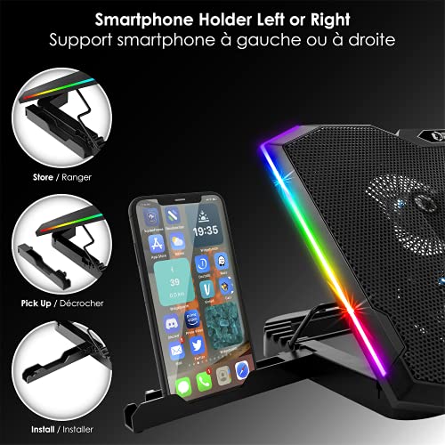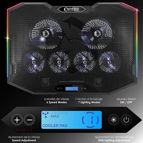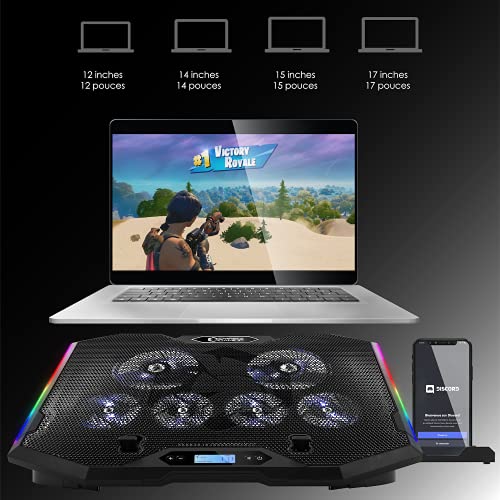 EMPIRE GAMING - Guardian S-C100 Refrigerador PC Ordenador Portátil RGB Gamer – 6 Ventiladores - Controlador LCD - 5 Alturas Regulables – Compatible de 12’’ a 17’’ -Soporte Smartphone Desmontable