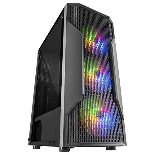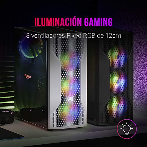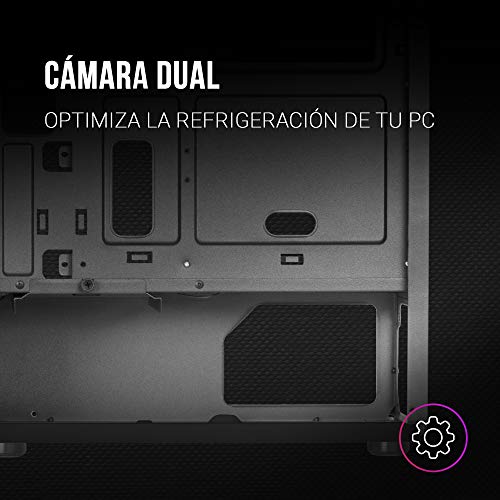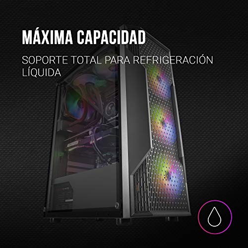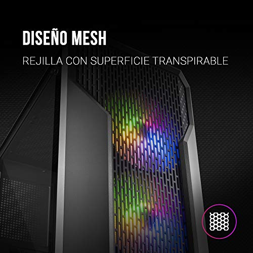 - SEMITORRE GAMING RGB: La ventana lateral total permite visualizar el interior de tu caja gaming y disfrutar de una iluminación ampliada; El panel frontal de rejilla te permite disfrutar de la iluminación de los ventiladores FRGB incluidos y ayuda a incrementar la circulación del aire