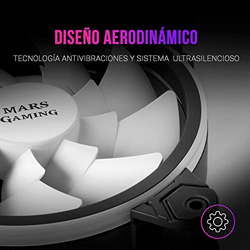 MARSGAMING MFX, Ventilador PC 12cm, ARGB Dual, Ultra-silencioso 14db, Negro