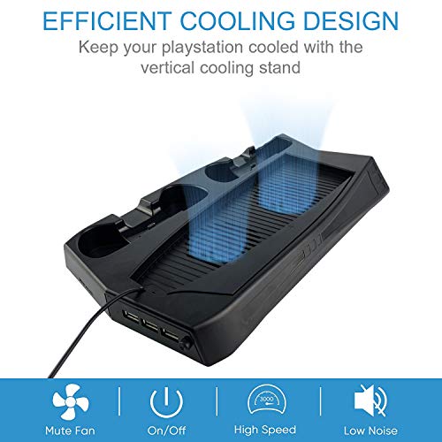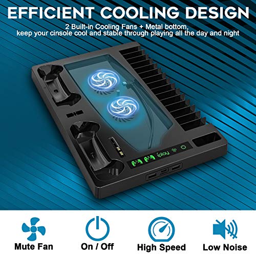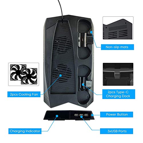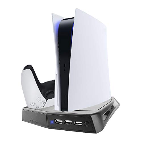 Soporte Vertical con Ventiladores de Refrigeración, PTN Estación de Carga con Controlador Dual Todo en Uno, Refrigeración Enfriamiento para PS5 Playstation 5 Digital Edition/Ultra HD Controller
