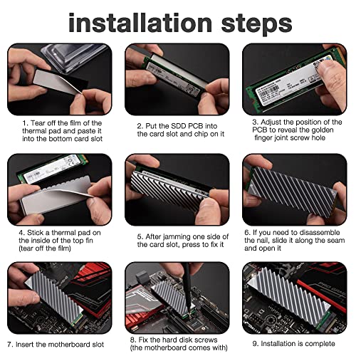 - Este refrigerador M.2 2280 SSD está especialmente diseñado para ordenadores de sobremesa y es compatible con los tipos de una cara y doble cara. El disipador de calor M.2 SSD está diseñado para Samsung 980 Pro, 970 Pro, 970 EVO, 960 EVO, 860 EVO, PS5, etc.