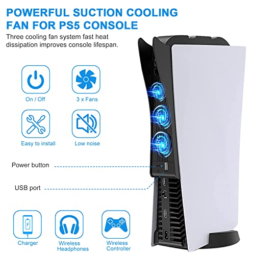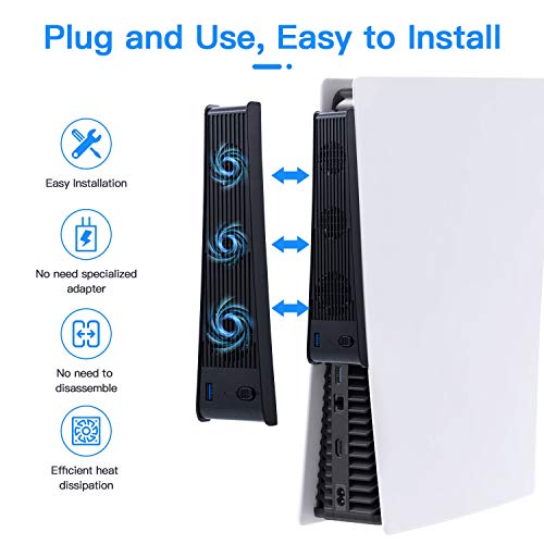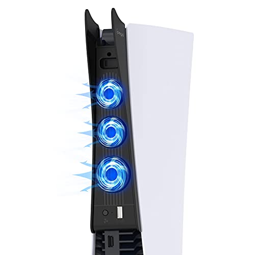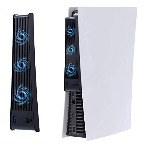 FASTSNAIL Ventilador de refrigeración para PS5, ventilador externo de triple alta velocidad con soporte para auriculares y puerto USB 3.0 para Sony Playstation 5 Disc y consola de edición digital
