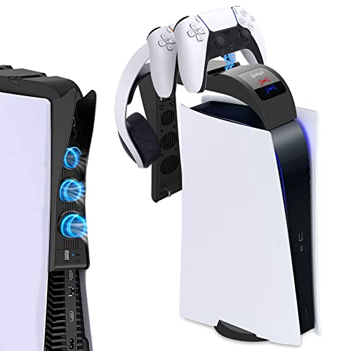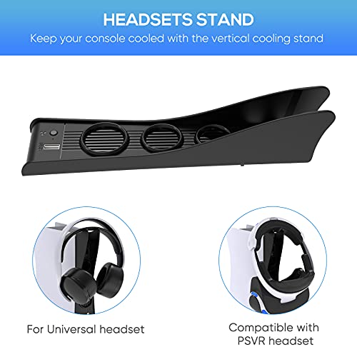 EEEKit Ventilador para PS5 con estación de Carga para el Mando, Cargador rápido para Playstation 5 Soporte para Auriculares del Mando Dualsense para Accesorios de la Consola PS5